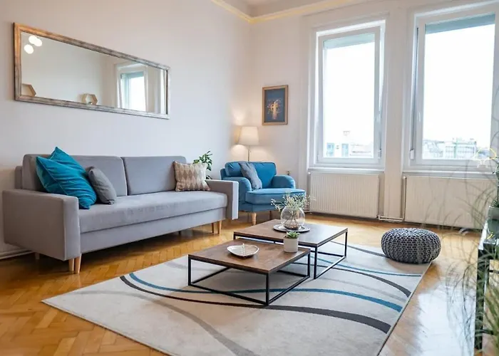 The 1-room Chic Central Flat With River View Budapest offers proximity to a number of tourist attractions, such as the Romantic-style Vigado Concert Hall, located nearly a 25-minute walk away.